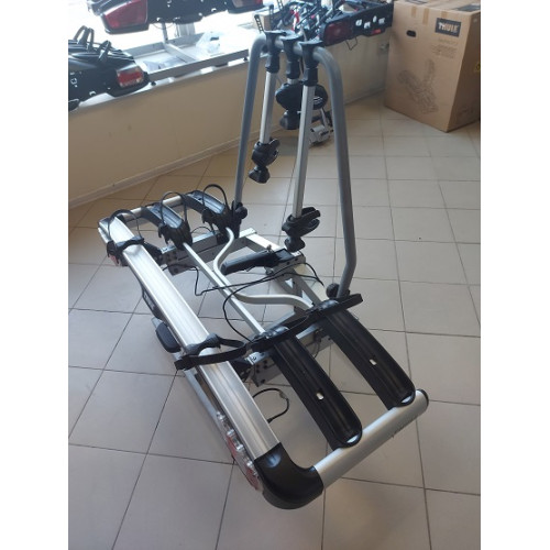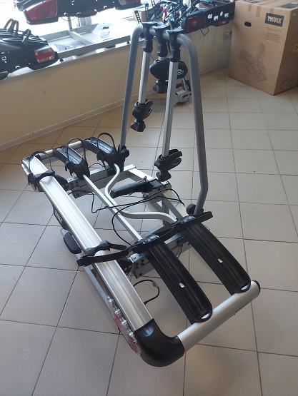 Это полноразмерный багажник для велосипедов на фаркоп, который подходит даже для моделей с длинной колесной базой. Крепление также готово для перевозки электровелосипедов, так как выдерживает до 25 кг на один велосипед.