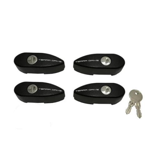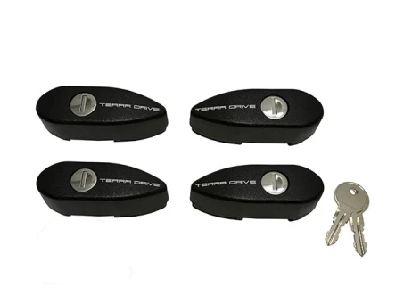 Торцеві заглушки Terra Drive Wing із замками та ключами призначені для аеродинамічних краплеподібних поперечин Terra Drive. Забезпечують надійну фіксацію, захист від крадіжки та охайний зовнішній вигляд багажної системи.